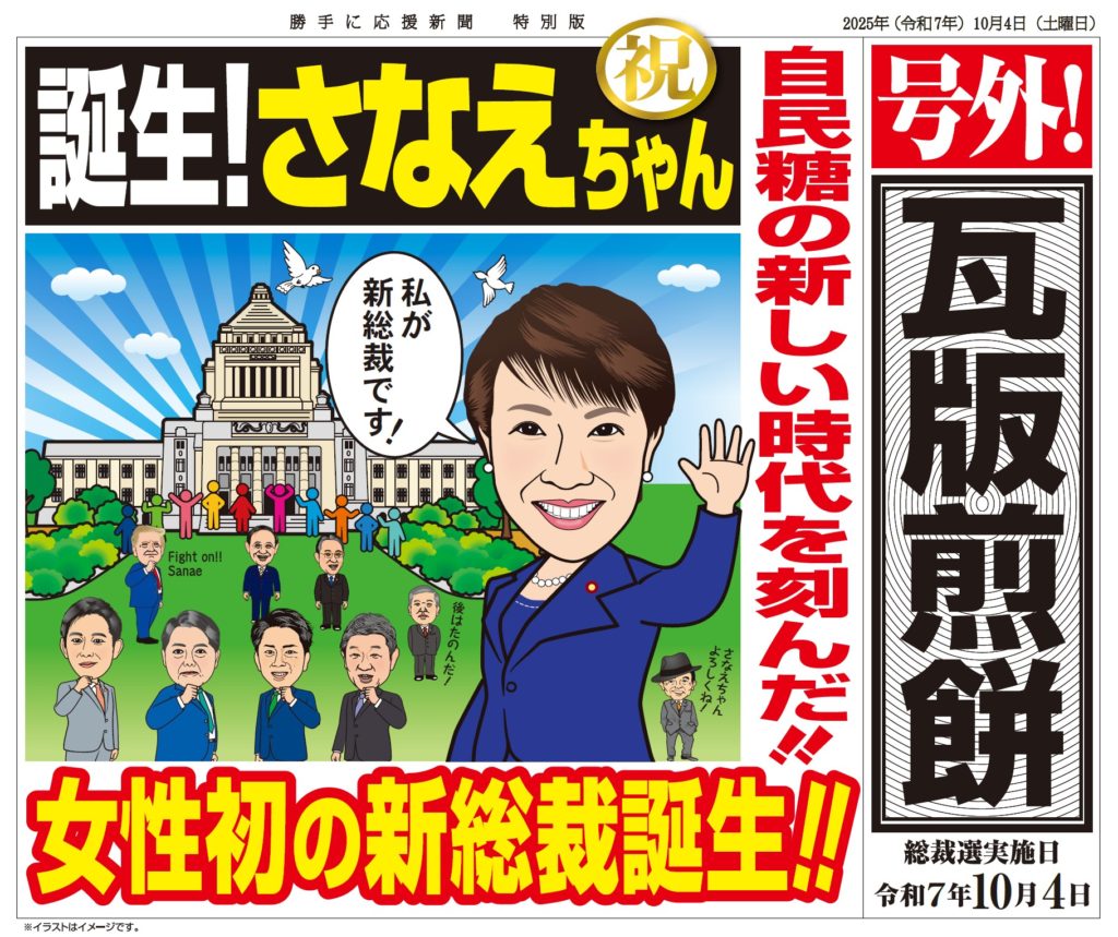 年別アーカイブ 2025年 2024年 2025.10.15 新商品のご案内 商品名 :誕生!新総裁 さなえちゃん瓦版煎餅 特徴 :新総裁のイラストをプリントした瓦せんべいです。 内容量 :16枚 賞味期限:製造日より180日 販売場所:国会議員会館(10/9~)、オンラインショップ(準備出来次第)